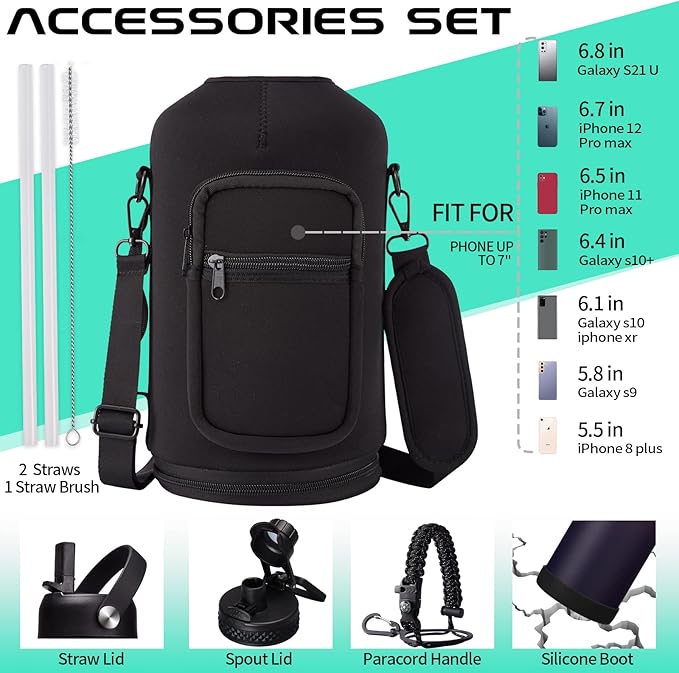 - SUPER JOYFUL COMBO: Buy a 128 oz insulated water bottle, get 9 accessories (2 x lids, 1 x survival paracord, 1 x carrying pouch, 1 x shoulder strap, 1 x protective cup mat, 2 x straws, 1 x straw brush). DIGJUPER provide a lifetime warranty and 7X24H customer service.