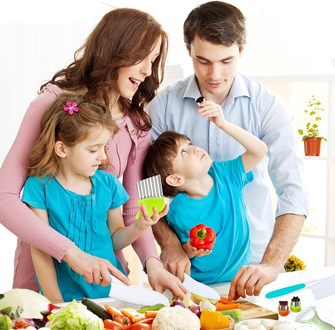 - 【Great Gift For Kids】: If you are searching for an efficient kid safe knives, we’ve got you covered! Allow kids to join your kitchen and become independent cooks! It is the perfect gift idea for your kids on their birthdays or during holidays