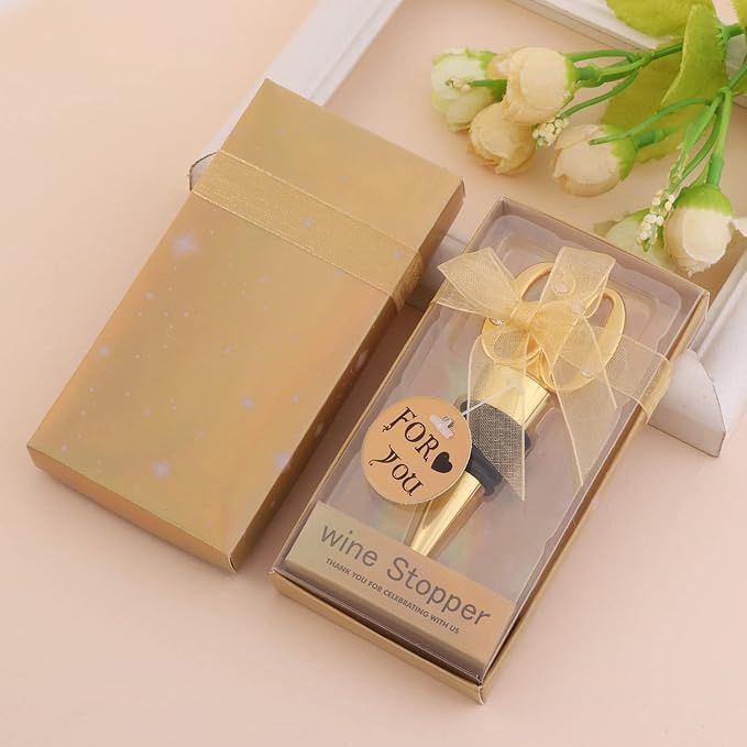 - Birthday Party Favors for Guests: Golden color and rhinestones add sparkling details to give them a beautiful look. Add extra charm to your classy Gold birthday or wedding anniversary party by gifting these gorgeous bottle openers! These wine stopper are ones your family and friends will love.