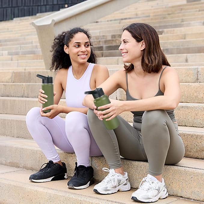 Stainless Steel Water bottle with Straw & Wide Mouth Lid, Wide Rotating Handle, 18oz Double Wall Vacuum Insulated Water Bottle Leak Proof, BPA Free, Keep Cold and Hot, 18oz, Army Green