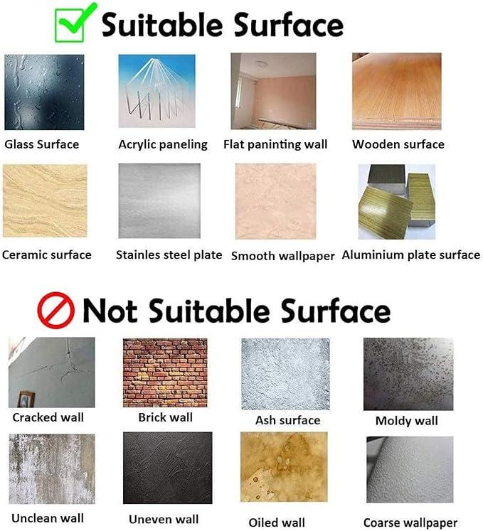 - Please keep the surface FLAT, DRY and CLEAN before sticking,or it will lose the adhesive because the particles or water will come attached to it; You can use a credit card to smooth out all the bubbles, starting from the center out to the edges