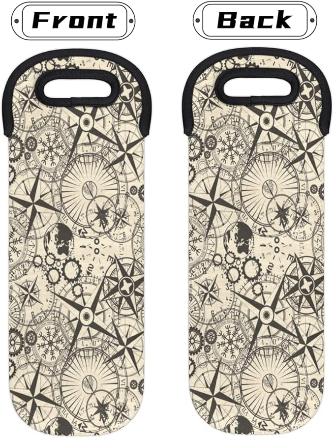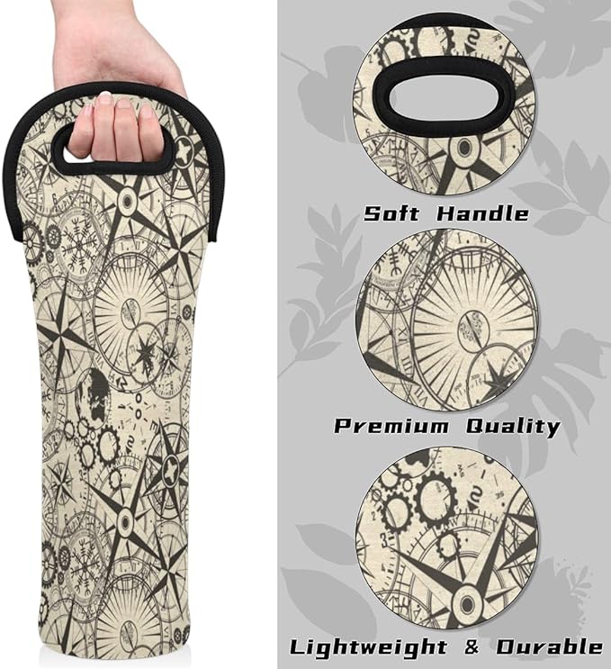 Compass Old Signs Single Bottle Wine Gift Tote Carrier Neoprene Wine Tote Bags Holder Cooler Wine Lover Gift