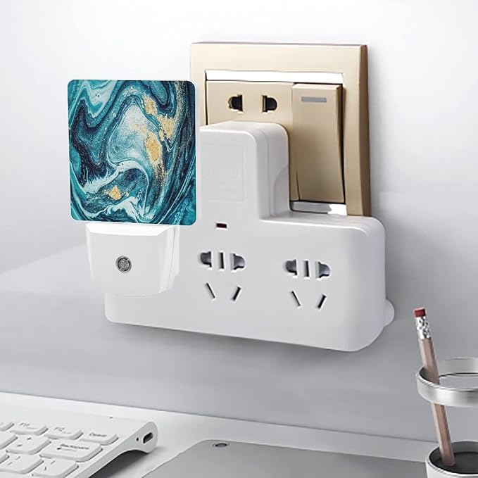 LED Night Lights Lamp with Dusk to Dawn Sensor, Very Beautiful Blue Marble with Gold Powder Night Lamp, Night Lights Plug Into Wall for Kids Room, Bedroom, Bathroom, Kitchen, Hallway