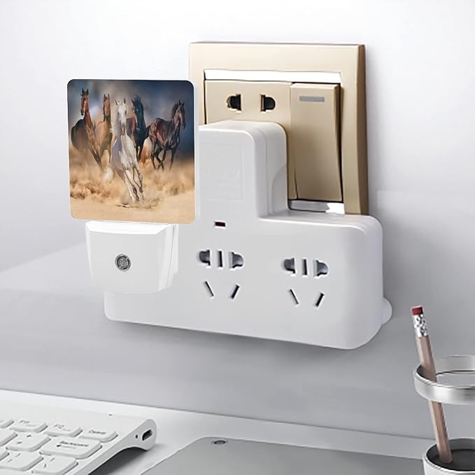 LED Night Lights Lamp with Dusk to Dawn Sensor, Running Horses Night Lamp, Night Lights Plug Into Wall for Kids Room, Bedroom, Bathroom, Kitchen, Hallway