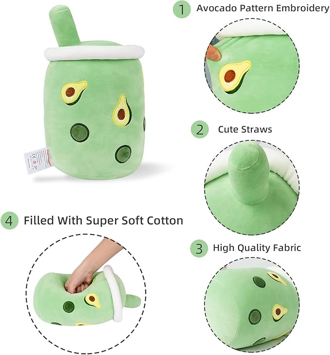 - Suitable Size. Avocado Boba Plush Toy is big enough to stand out but small enough to carry around.