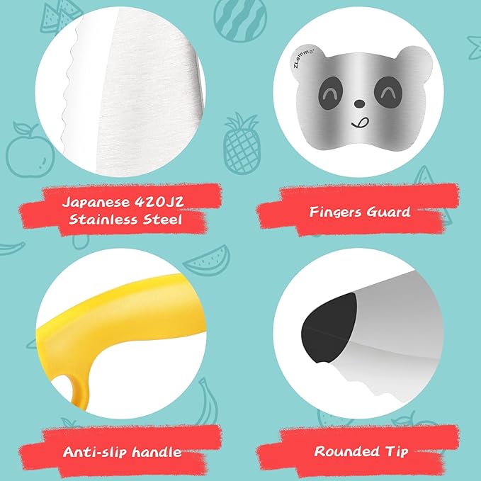 - 【Emphasis on Safety】 Safety is of utmost importance, and the ZLemma Kids Knife excels in providing a secure cutting experience. The finger guard attachment ensures that children's fingers are shielded from any potential cuts while they practice their knife skills. Furthermore, the knife's blade is designed with a safe serrated edge, specifically crafted to cut through food without posing a risk to anything else.