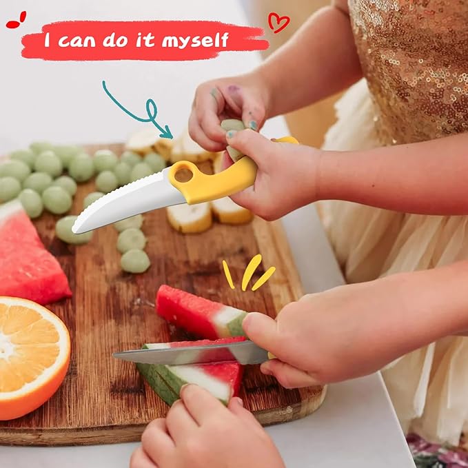 Kids Chef Knife Set for Real Cooking with Safe Finger Guard, Stainless Steel Blade & PP Handle,Perfect for Training Cutting Montessori Kitchen Tool, Kid-Friendly BPA Free (Yellow)