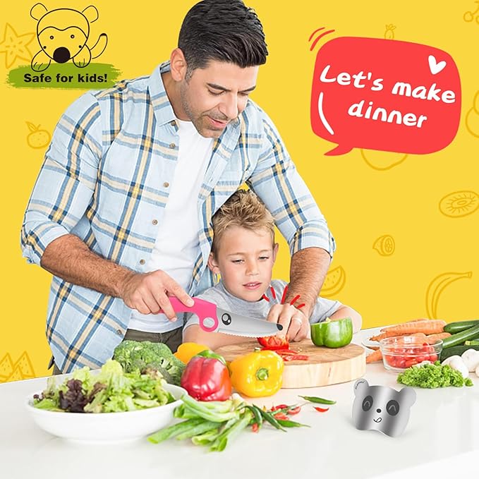 - 【Emphasis on Safety】 Safety is of utmost importance, and the ZLemma Kids Knife excels in providing a secure cutting experience. The finger guard attachment ensures that children's fingers are shielded from any potential cuts while they practice their knife skills. Furthermore, the knife's blade is designed with a safe serrated edge, specifically crafted to cut through food without posing a risk to anything else.