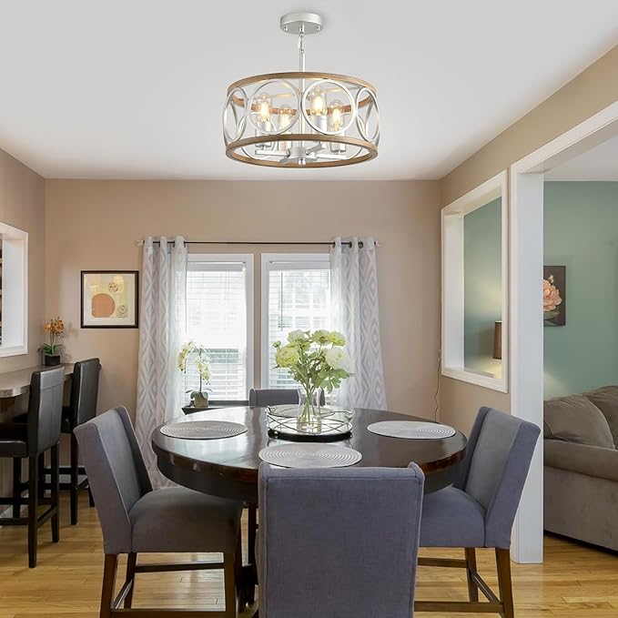 - Gorgeous Farmhouse Lighting Decor Your House:This semi flush mount ceiling light features open-cage drum shape design with flawless matte finish, which gives your house a comfortable and cozy ambiance with farmhouse, industrial, modern, rustic, vintage charm. Such a minimalistic but stylish chandelier lighting fixture is an ideal lighting choice for your space while a great decoration element to your house, adding more elegance and charm to your home