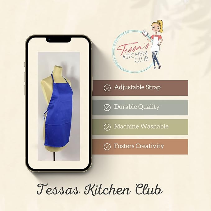 Tessa's Kitchen Club - Chef Hat and Apron Set for Kids, Real Cooking and Baking Wear Kit for Young Chefs in Training