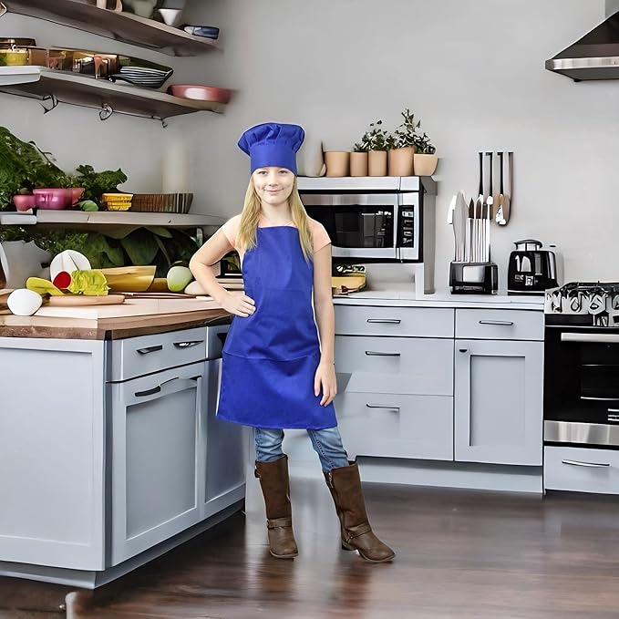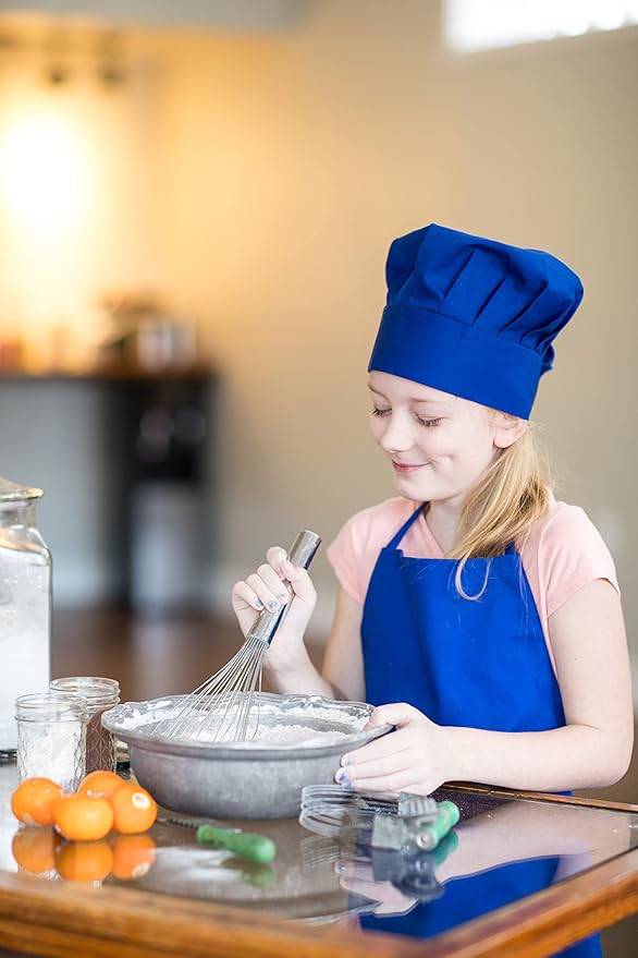 - DURABLE & QUALITY DESIGN: Crafted from quality fabric and designed with the same standards as our industrial commercial adult hats, our children's chef hats and aprons ensure long-lasting durability for your little one's cooking, baking, and painting adventures.