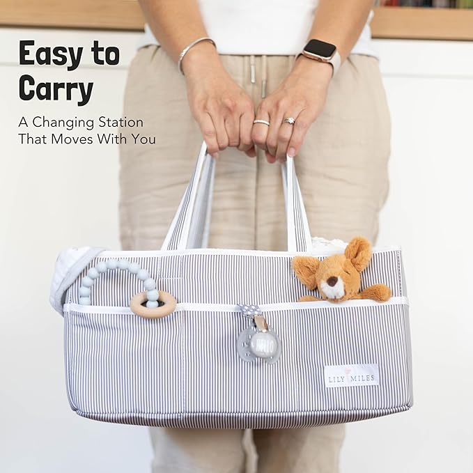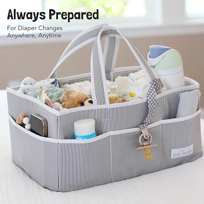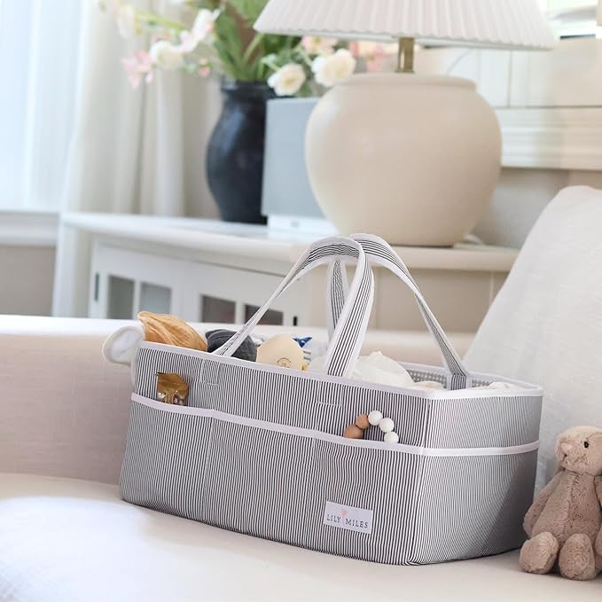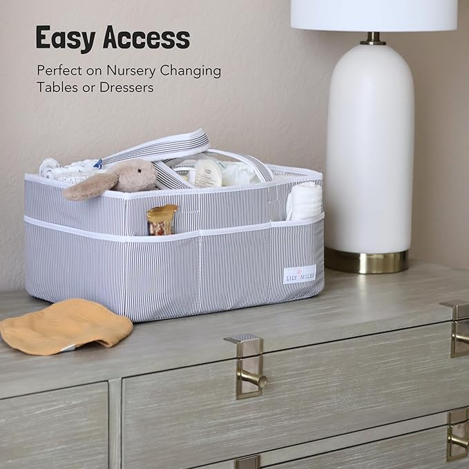 Lily Miles Baby Diaper Caddy Organizer - Baby Shower Basket for Newborn Boys or Girls - Nursery Must Haves for New Mom - Baby Registry Favorites - Large Storage Tote for Changing Table or Car, Gray