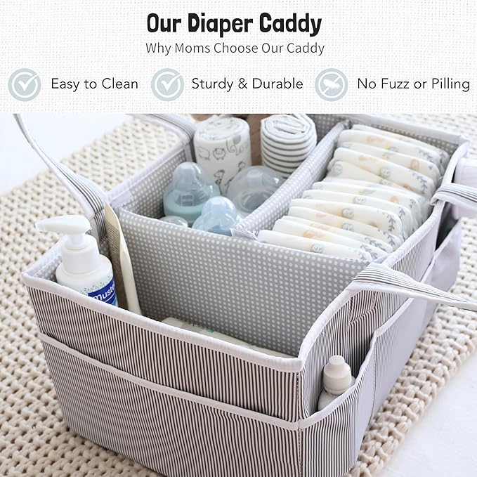 - The perfect baby shower gift - Our premium baby diaper caddy is a popular baby gifts for new moms. Impress new parents with this thoughtful and practical choice, making their lives easier and their nursery more organized.