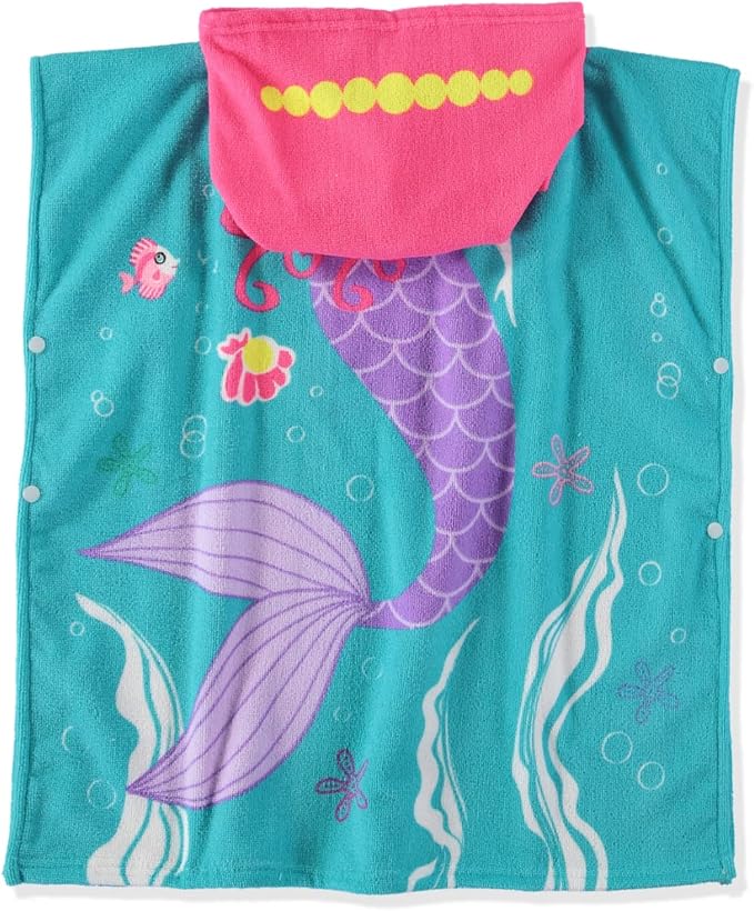 Boys and Girls Absorbent Hooded Beach Towel Pullover Character Microfiber Bath Towel with Side Snaps (Mermaid, 6-7)