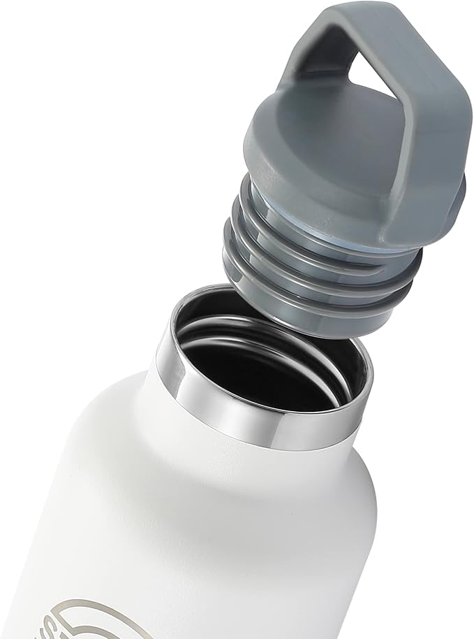 STOVER Insulated Water Bottle, 16oz Stainless Steel Double Wall Vacuum Wide Mouth Leakproof Twist Lid, Ideal for Sports, Travel & Daily Use (White)