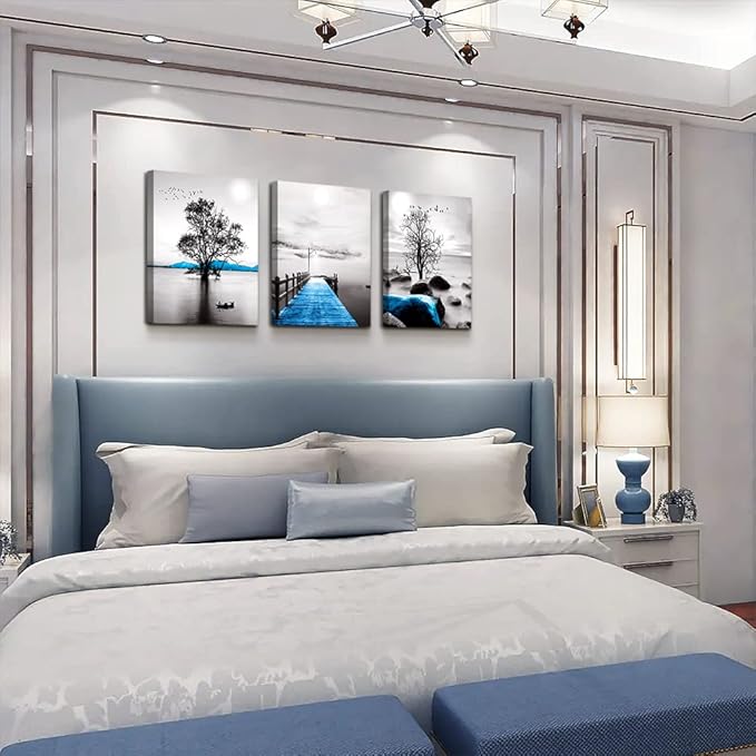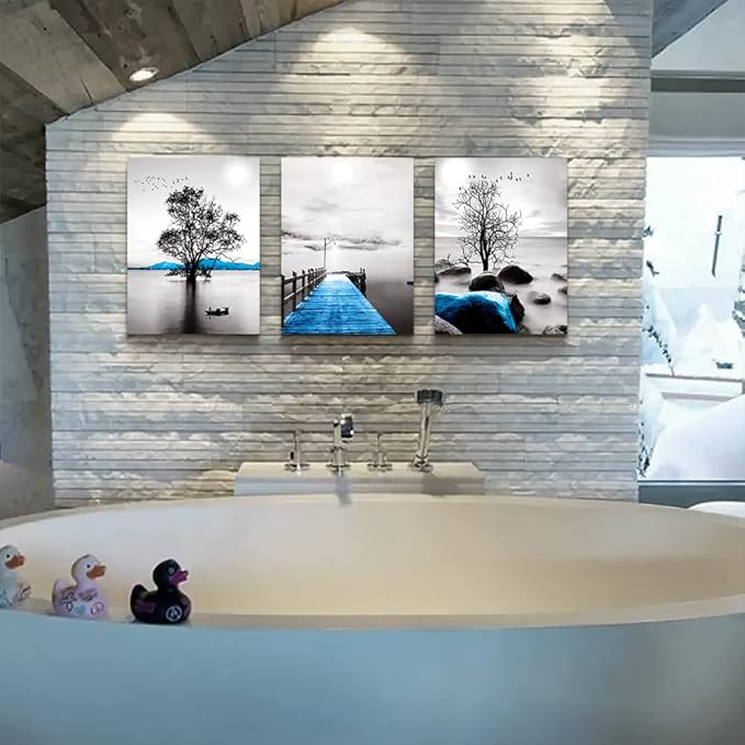 Wall Decorations For Living Room Framed Canvas Wall Art For Bedroom Office Wall Decor Black And White Ocean Landscape Wall Paintings Modern Posters Pictures Artwork For Bathroom Home Decor 3 Piece