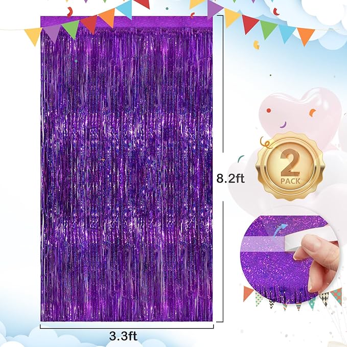 - Materials: The package contains 2 packs of aluminum foil tassel curtains with a size of 3.3 x 8.3 ft. It is long enough for any occasion. Please do not stick aluminum foil Streamers curtains to uneven or stained walls to prevent them from falling off