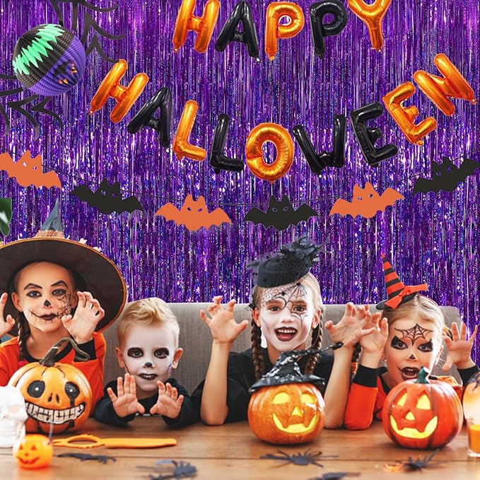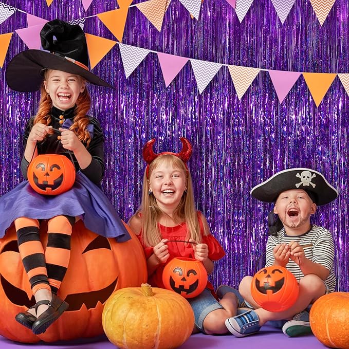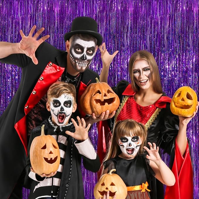 2 Pack Purple Metallic Tinsel Foil Fringe Curtains, Purple Streamers 3.3 x 8.3ft Party Streamers for Birthday Party Decorations, Foil Curtain Backdrop for Wedding Bachelorette Party, Halloween Decor