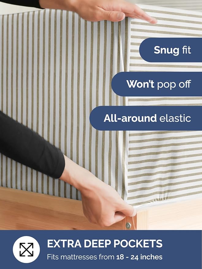 Extra Deep Split King Sheet Set - 7 Piece Breathable & Cooling Sheets - Hotel Luxury Bed Sheets Set - Easy Fit - Soft, Wrinkle Free & Comfy Sheets Set - Beige Striped Sheet Set w/Extra Deep Pockets