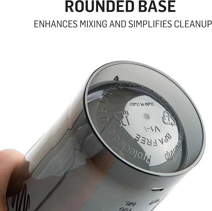 - Wide mouths make it easy to add mix scoops and liquids, and embossed markings measure both ounces and milliliters on both shaker cups.