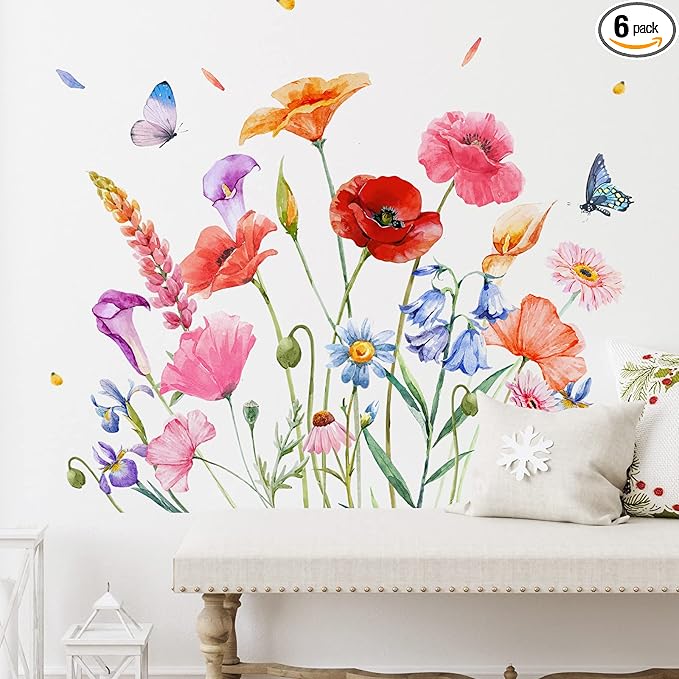 - Special design: the colorful garden bouquet wall sticker adopts watercolor painting style with multiples and pastel colors, looking gentle, romantic and exquisite, which combine the flower bouquets and butterflies to form a lively and dreamy scene in your room