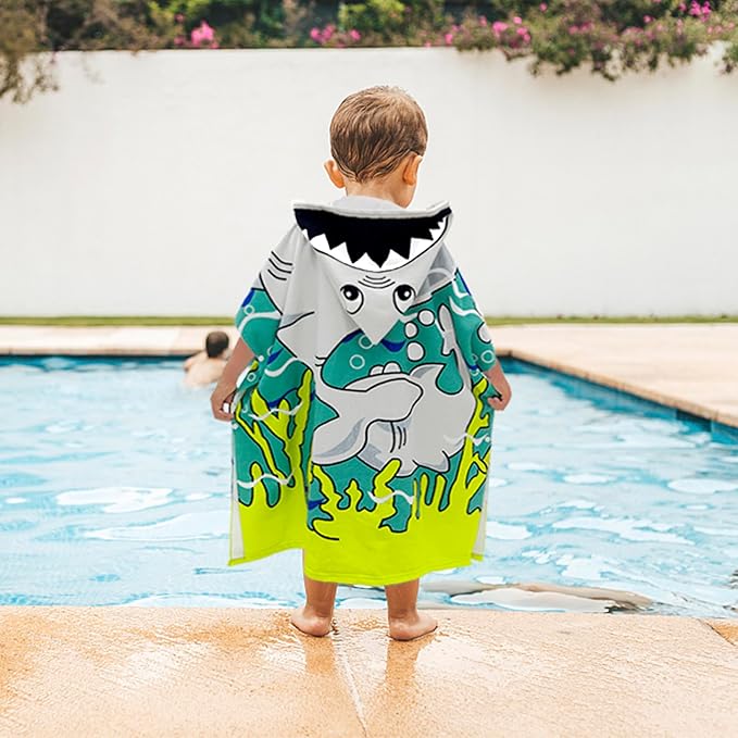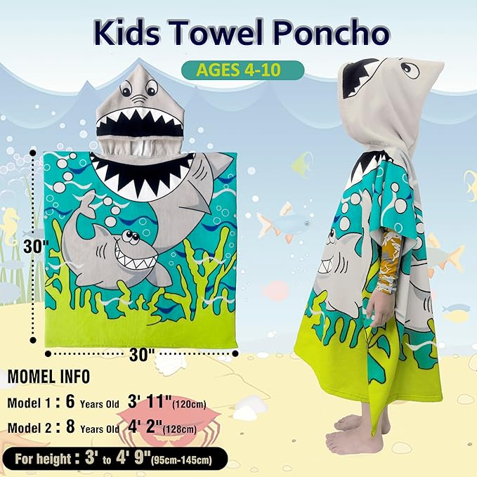 - 【Multi Uses】There's enough room to wrap around and cuddle up in. This poncho beach towels for kids are designed to dry their body or keep warm for kids, girls, and boys. It’s great for after the beach, pool, or bath, as well as to cover up before and after swim lessons. The size is 30“ W X 30 "L for kids around 37" to 57" height.