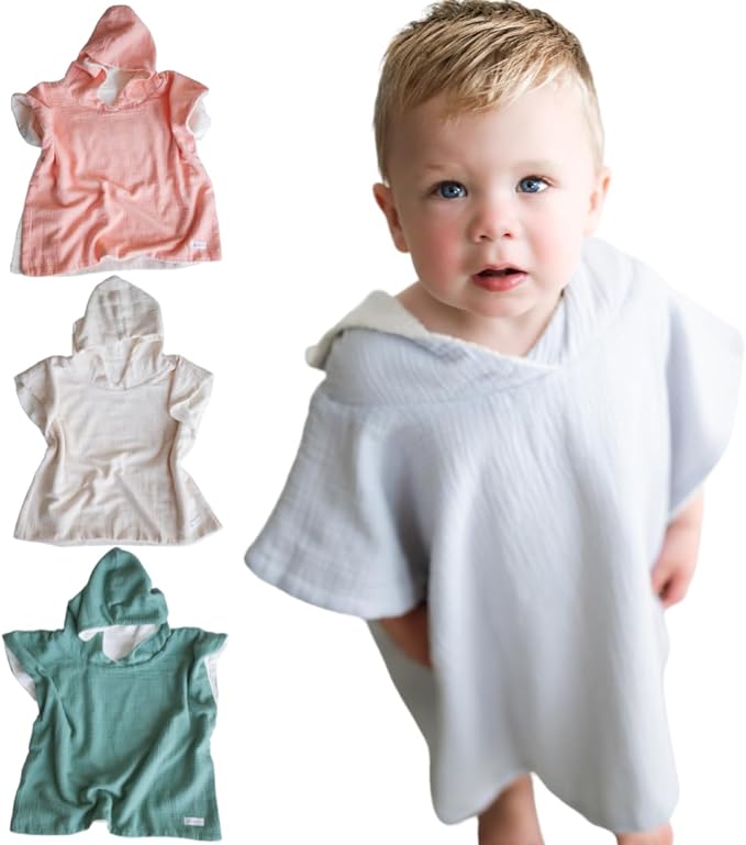 - Super Absorbent and Quick-Drying: Our hooded poncho towel is crafted with premium muslin outside and absorbent organic cotton inside, providing excellent water absorption after a refreshing swim or bath time.