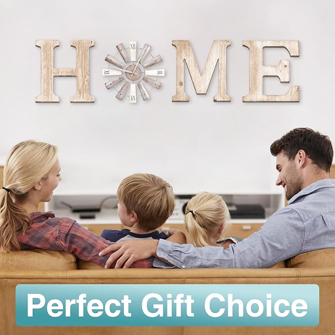 Farmhouse Home Signs with Windmill Clock Wall Decor Rustic Home Letters Wall Art for Living Room Kitchen Entryway Dining Room Bedroom (water-white)