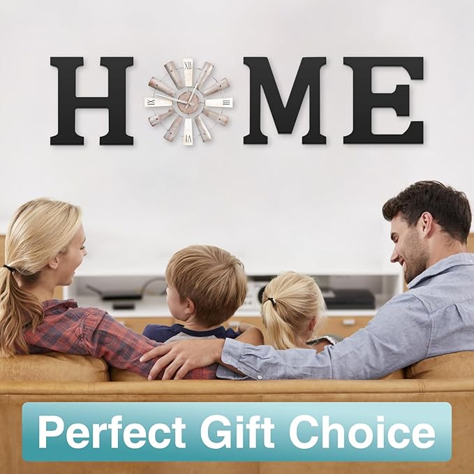 Farmhouse Home Signs with Windmill Clock Wall Decor Rustic Home Letters Wall Art for Living Room Kitchen Entryway Dining Room Bedroom (black)
