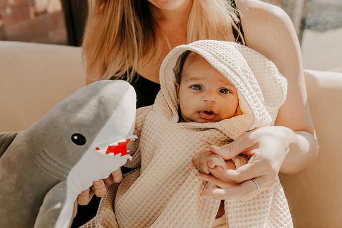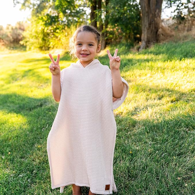 Hooded Towel for Babies + Toddlers | Snaps into a Poncho | Organic Cotton Waffle | Lighweight and Absorbent | Bath, Beach, and Pool | Multiple Colors (Small (0-3 Yrs), Cloud)