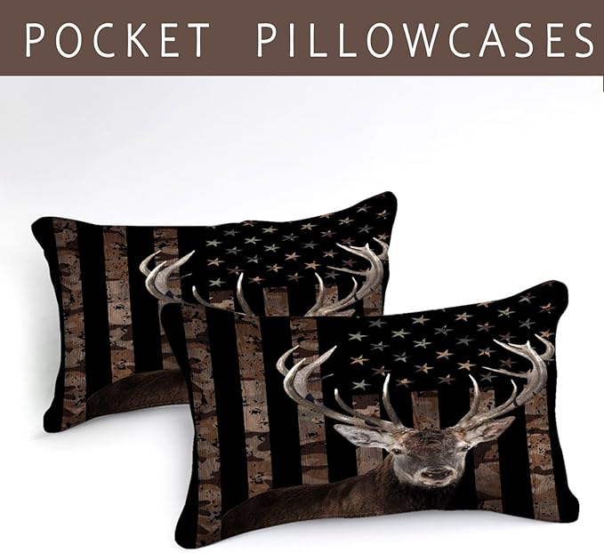 Bedbay American Flag Bedding Set California King Comforter Bed Set Deer Hunting Hunter Bedroom Decor for Men Wild Animal Camo Duvet Insert 4 Pcs Soft Lightweight Comforter Quilt Set (Deer,Cal-King)