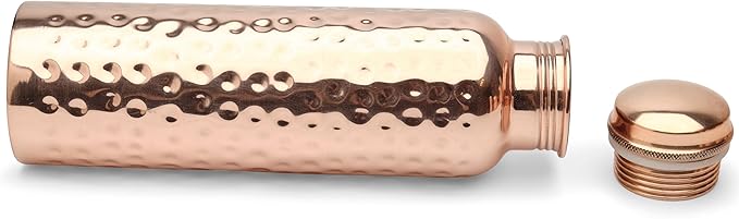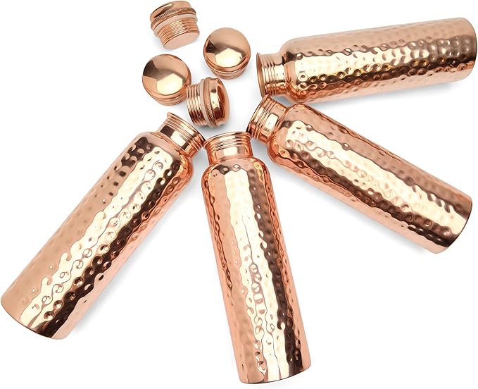 Glytterati Hammered Copper Water Bottle (34 oz/1000ml) (Set of 4) | Pure Copper Bottle | Pure Copper Vessel | Copper Bottle for Drinking Water