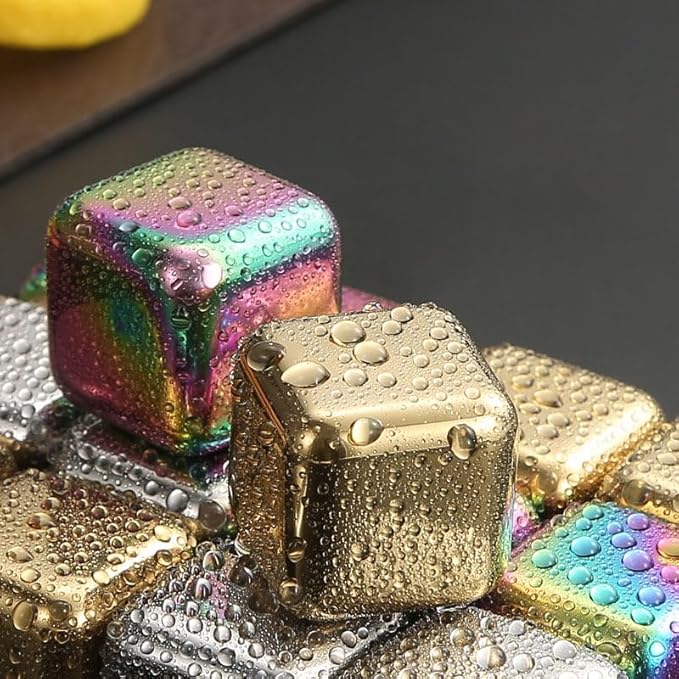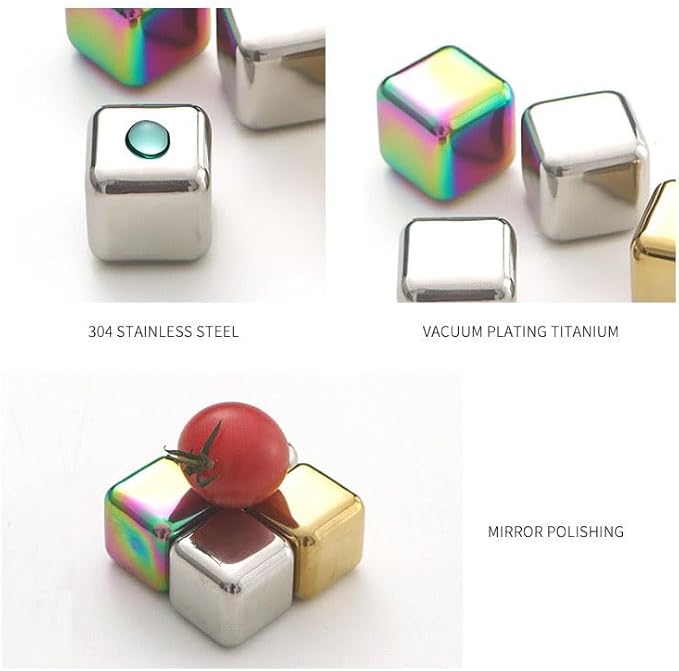 ShanSon Wine Chillers Metal Ice Cube 8 PCS Stainless Steel Whiskey Stones Reusable Whiskey Rocks Beverage Chilling Stones for Scotch and Bourbon Drinking Gifts Set for Men Dad Husband,Silver