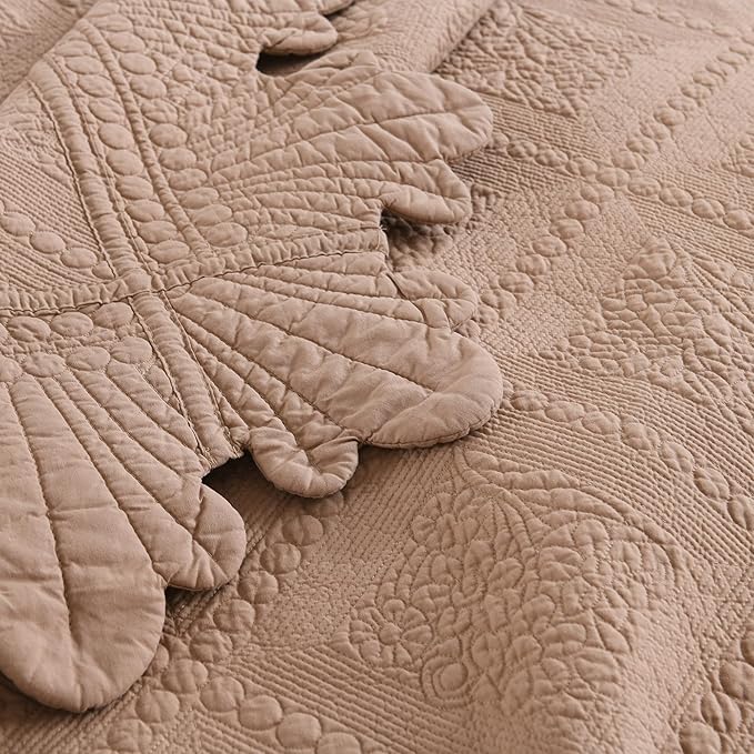 MarCielo 3-Piece 100% Cotton Oversized Bedspread Lightweight Quilt Coverlet Embroidery Farmhouse Bedding Set (TK Pale Taupe Camel, Oversized King (118"x106"))