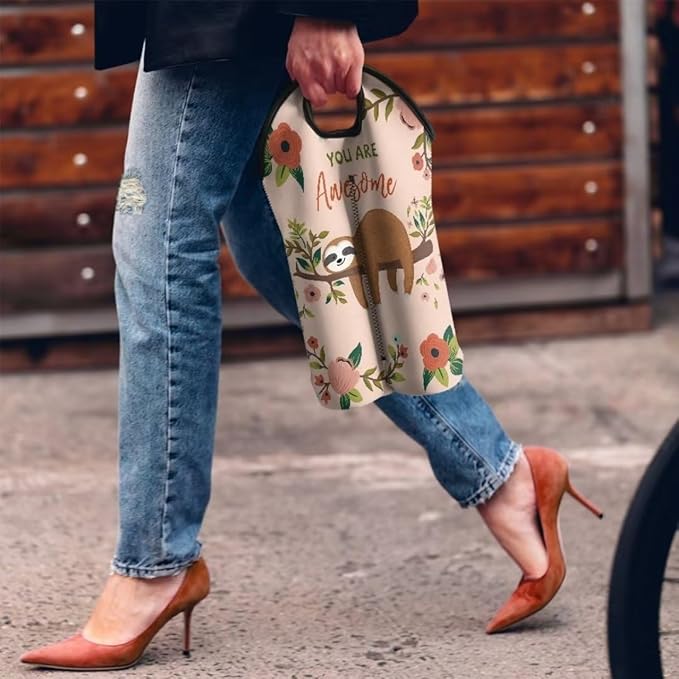 doginthehole Cute Sloth 2 Bottle Wine Carrier Tote Wine Bottle Insulated Sleeve for 750ML Portable Neoprene Wine Tote Holders Travel Picnic Party Champagne Carrier Bag with Handle