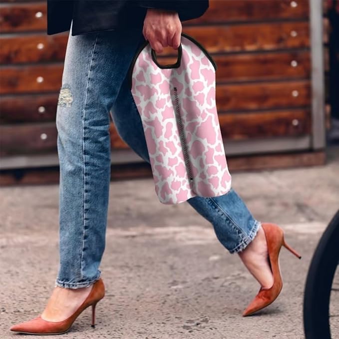 doginthehole Cow Print Insulated Wine Bag Water Bottle Carrier Portable Wine Cooler Bag Neoprene Protection Tote Bag Wine/Champagne/Water Bottle/Beer/Drinks Carrying Bag, Gift for Wine Lover Women