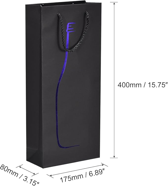 - Size: 175x80x400mm/6.89"x3.15"x15.75"(LxWxH); Material: Paper Bag; Color: Black+Blue; Products Include: 1pcs x Wine Bags; Large enough to hold a 750ml wine bottle, or other items in a similar size.