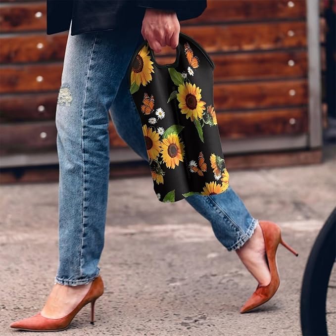 doginthehole Sunflower Butterfly Wine Bottle Carrier Reusable Wine Gift Tote Bags 2 Bottle Wine Bag for Birthday Party Wine Carry Holder Neoprene Champagne Bottle Protective Bag