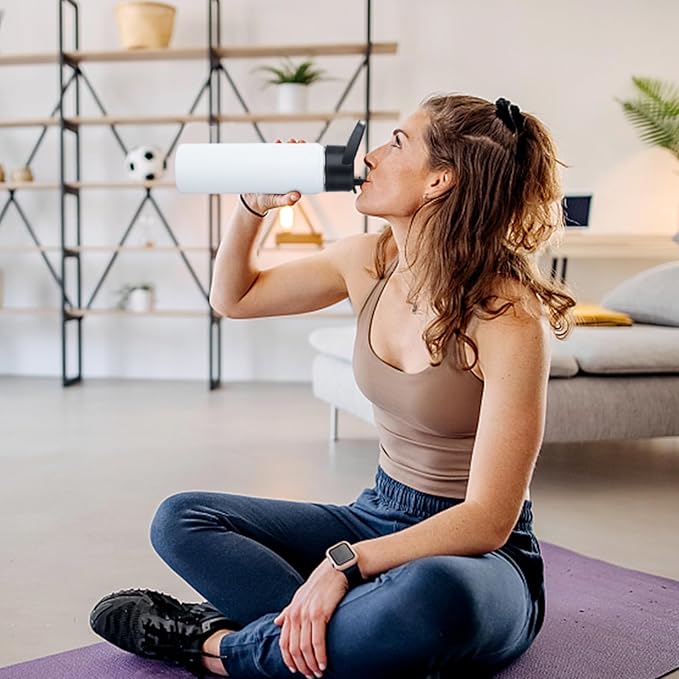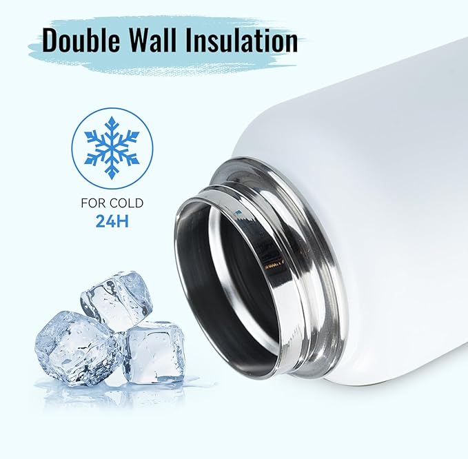 Stainless Steel Water bottle with Straw & Wide Mouth Lid, Wide Rotating Handle, 40oz Double Wall Vacuum Insulated Water Bottle Leak Proof, BPA Free, Keep Cold and Hot, 40oz, White