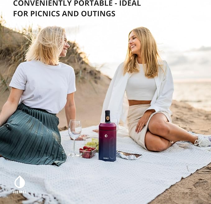 - Take your wine on the go with our portable wine chiller, keeping your favorite bottle at the ideal temperature wherever you are. Simply unscrew the top and insert your chilled bottle of wine. The interior is designed to accommodate a range of 750 mL wine bottle shapes.