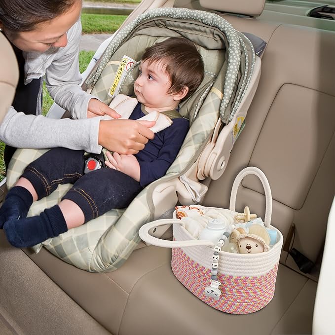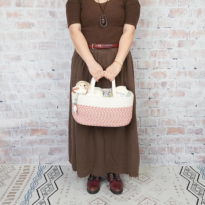 Baby Diaper Caddy Organizer for Girl Boy Rope Nursery Storage Bin Basket Portable Holder Tote Bag for Changing Table Car Travel Baby Shower Gifts Newborn Registry Must Haves