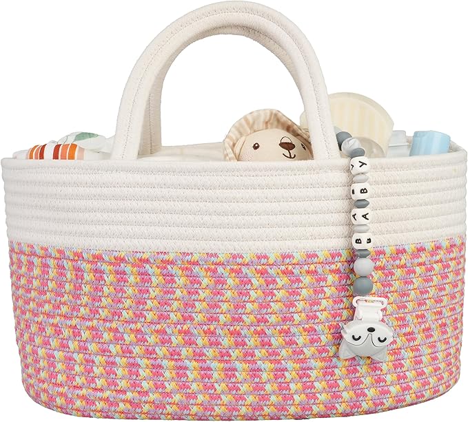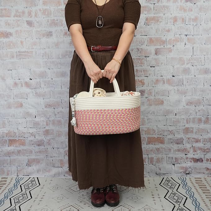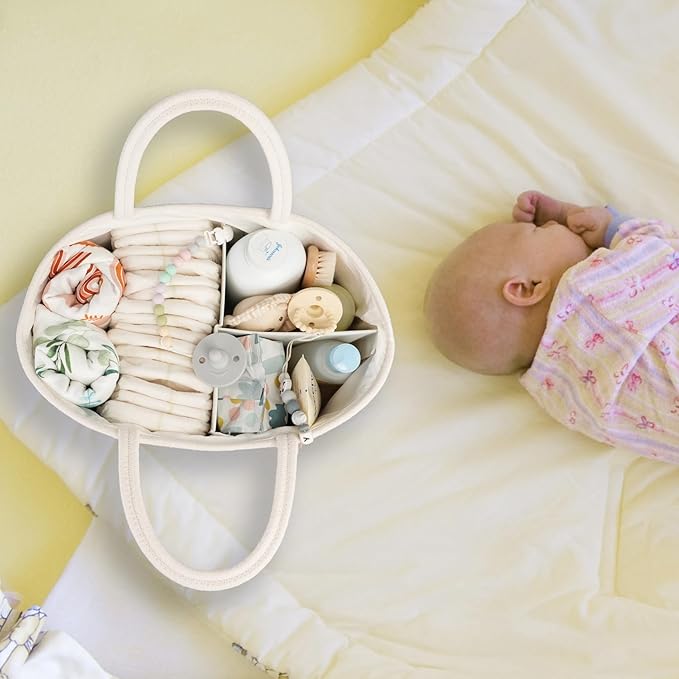 Large Baby Diaper Caddy Organizer for Girl Boy Rope Nursery Storage Bin Basket Portable Holder Tote Bag for Changing Table Car Travel Baby Shower Gifts Newborn Registry Must Haves