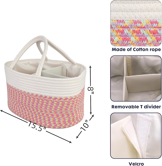 - Versatile baby organizer for newborn products: XUANGUO diaper holder is perfect for your changing station as changing table organizer, baby organization or anywhere in your home. This baby storage caddy or diaper basket is portable with sturdy handles, easy to carry. The removable divider can be easily taken out and use it as baby hamper, baby bath caddy or nursery basket for additional nursery storage. Gender neutral solid color compliments any nursery decor.