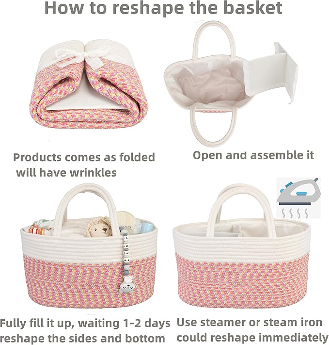 - Great Baby Gifts: This unisex diaper basket organizer is a perfect Newborn gifts as it Looks perfect on dresser top, next to diaper pail, bedside, crib and etc. This diaper basket caddy is not only beautiful but also practical. Could fill it with diapers, wipes or anything else new baby stuff as gift basket. Baby caddy is one of newborn must have items.