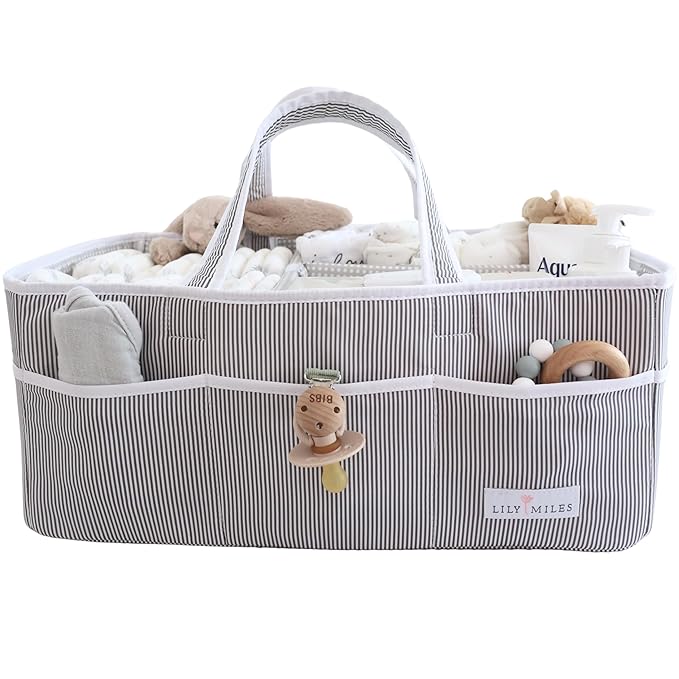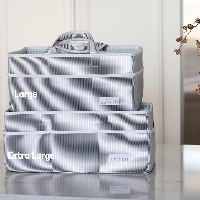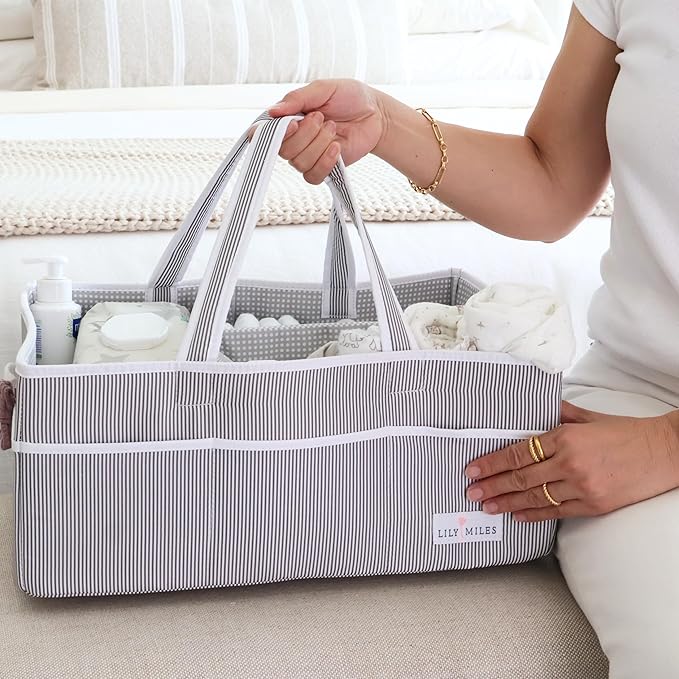 Lily Miles Baby Diaper Caddy - Organizer Tote Bag for Infant Boy or Girl - Baby Shower Basket - Nursery Must Haves - Registry Favorites - Newborn Caddie Car - Gray/Gray, Extra Large