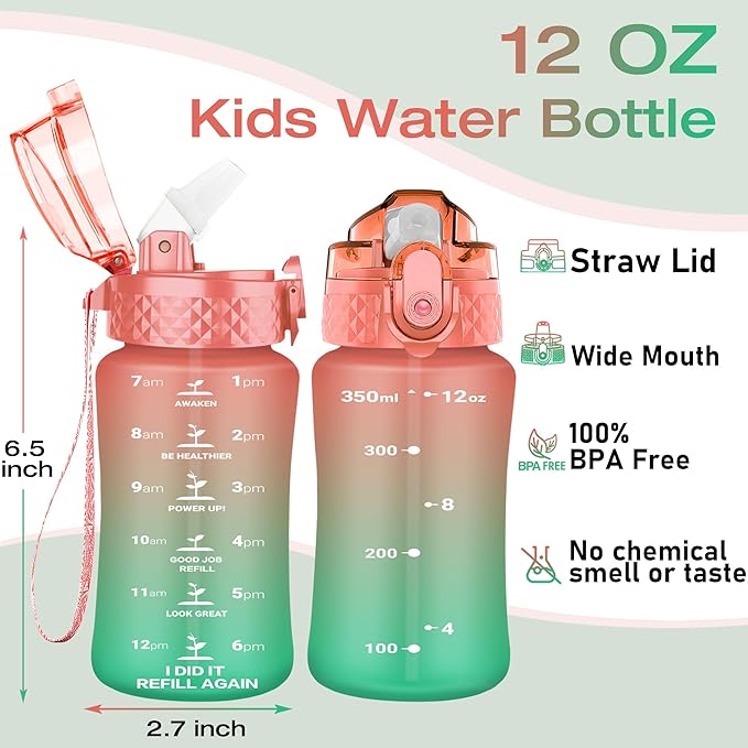 - 【Best for Kids】: Specifically designed for young children to promote hydration throughout the day. The flip-top lid incorporates a safety lock to prevent dust and leaks and can be effortlessly