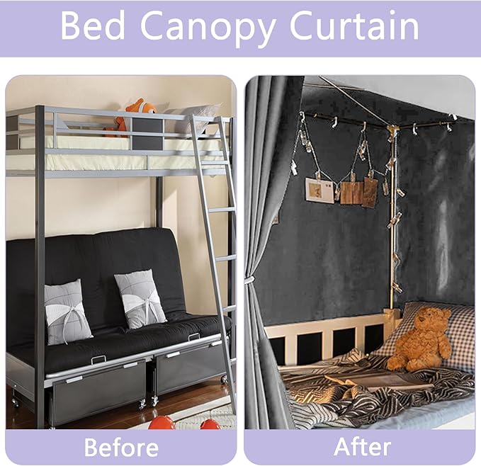 - 【Lightproof Canopy Curtains】90% lightproof shading effect of canopy curtains. Not too thick to increase fabric breathability. Grey twin bed canopy blocks out the strong light, protects you from bright lights and help you get quality sleep.