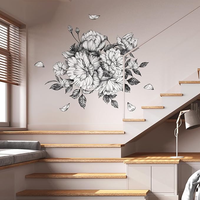 - Package Included: Black and white peony flower wall decals have 4pcs 50 x 40 cm/19.69 x 15.75 inches decals, sufficient quantity for daily decoration