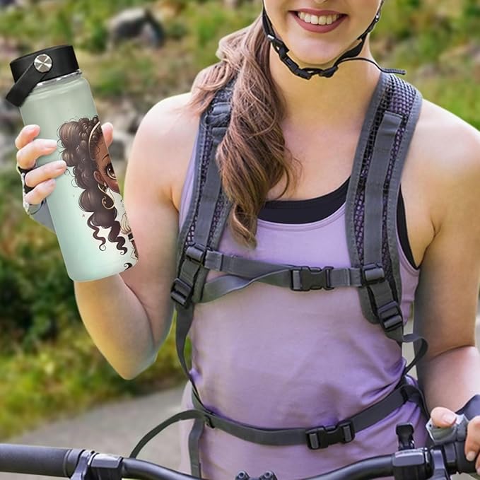 ZOUTAIRONG Black Afro Girl Insulated Water Bottle 20 oz Stainless Steel Sports Metal Water Flask African American Girls Water Cup Mug Reusable Water Bottle Jug for Daily Use, Travel, School