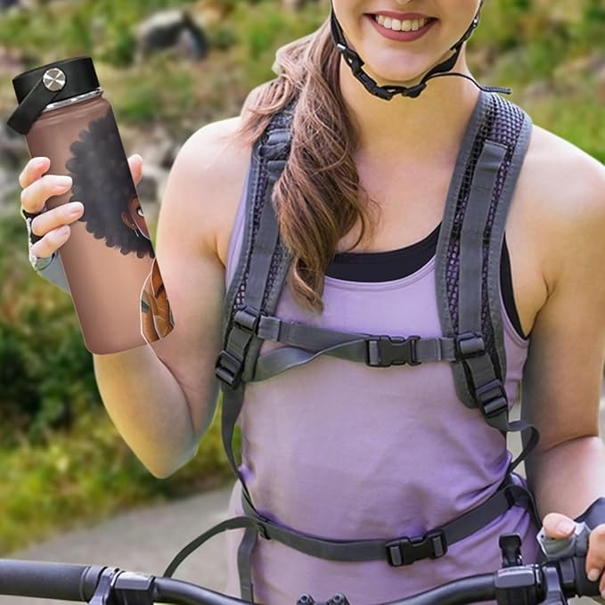 ZOUTAIRONG African Stainless Steel Water Bottle with Handle Vacuum Insulated Water Bottles 18 oz Metal Flask Afro American Travel Cup Coffee Mug Wide Mouth Bottle Leak Proof Reusable